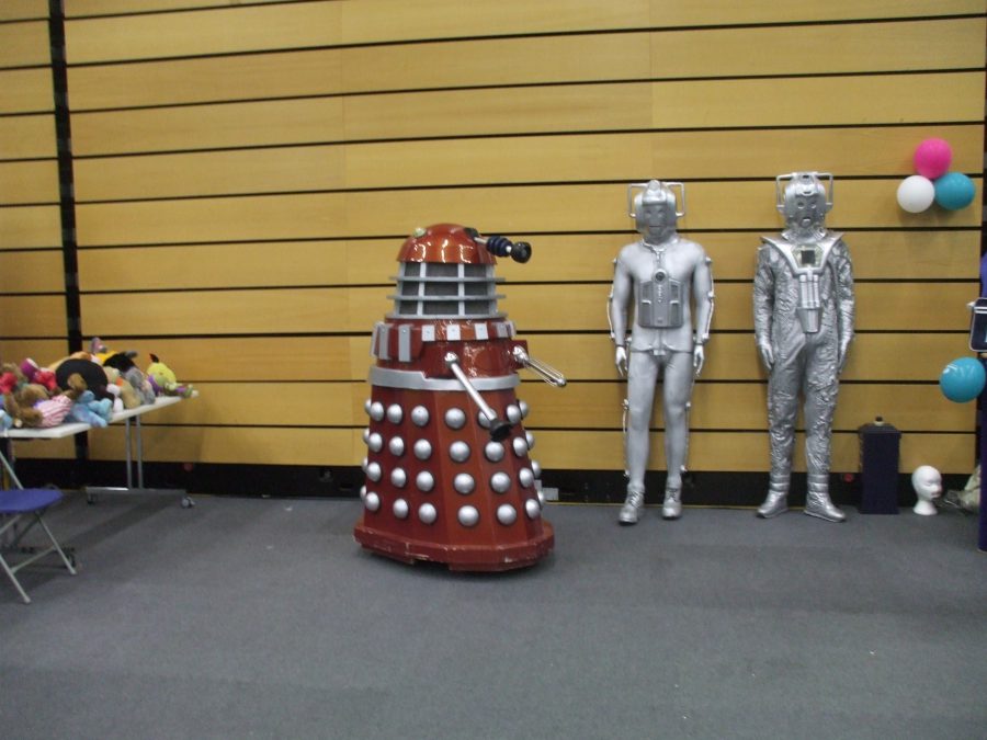 A Dalek with two Cybermen at ‘Worcester Comic Con’, August 2016