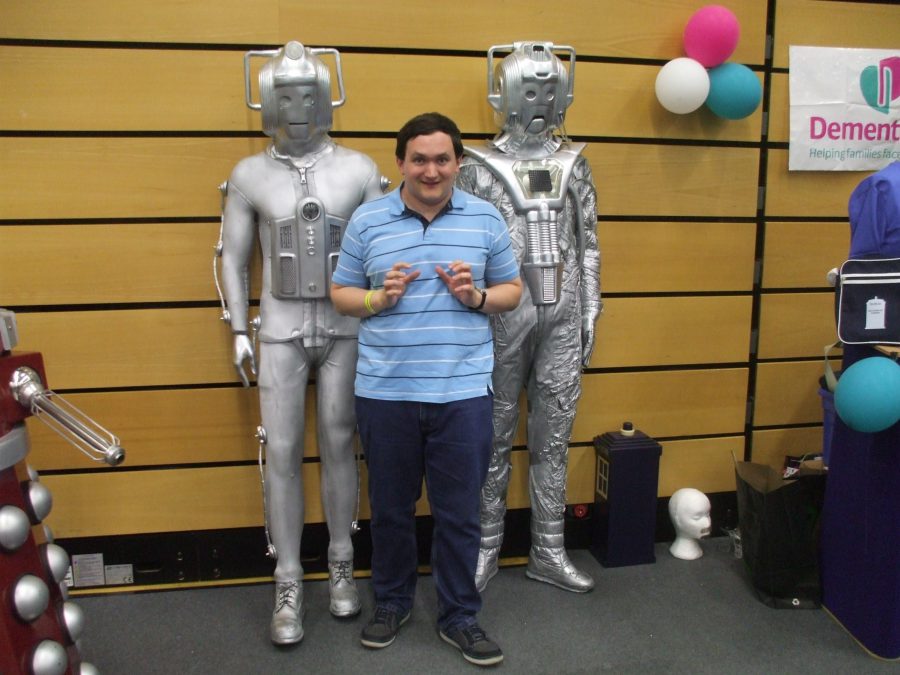 tim and cybermen ← Previous Next → Tim Bradley with ‘Invasion’ Cyberman and ‘Earthshock’ at ‘Worcester Comic Con’, August 2016