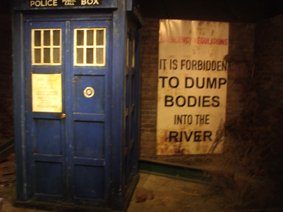 the dalek invasion of earth doctor who experience ← Previous Next → The TARDIS with the poster ‘IT IS FORBIDDEN TO DUMP BODIES INTO THE RIVER’ from ‘The Dalek Invasion of Earth’, ‘Doctor Who Experience’, April 2017