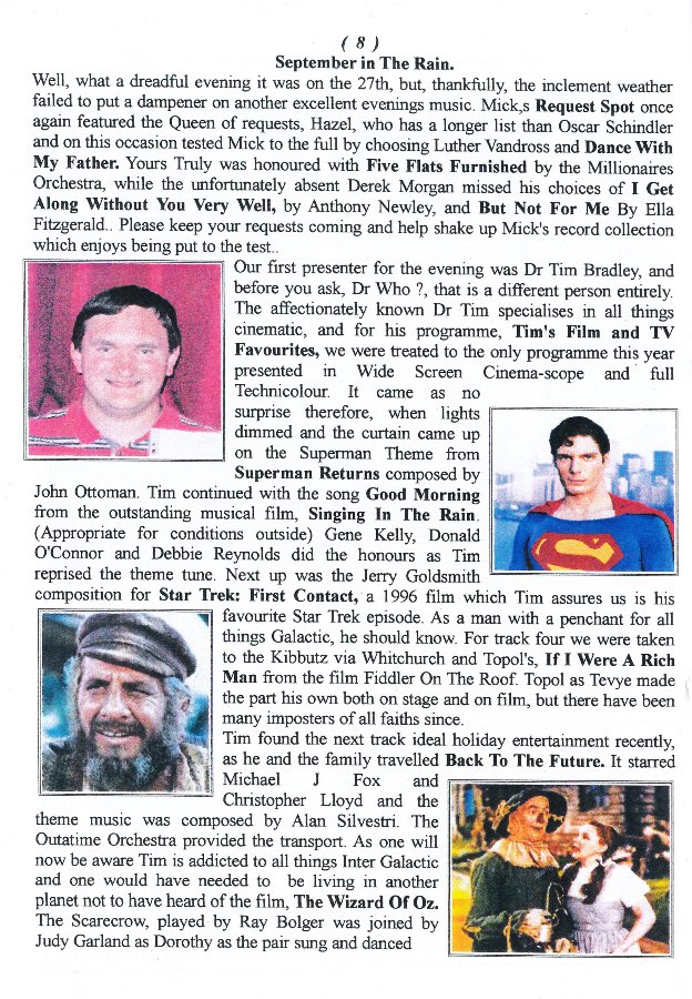 In the last week of September, I did a music presentation at the ‘Newport Nostalgia Music Society’ called ‘Tim’s Film/TV Favourites’. Last week for this month, I had my name and presentation mentioned in the ‘NNMS’ newsletter for October 2017, produced by newsletter editor, Len O’Brian.