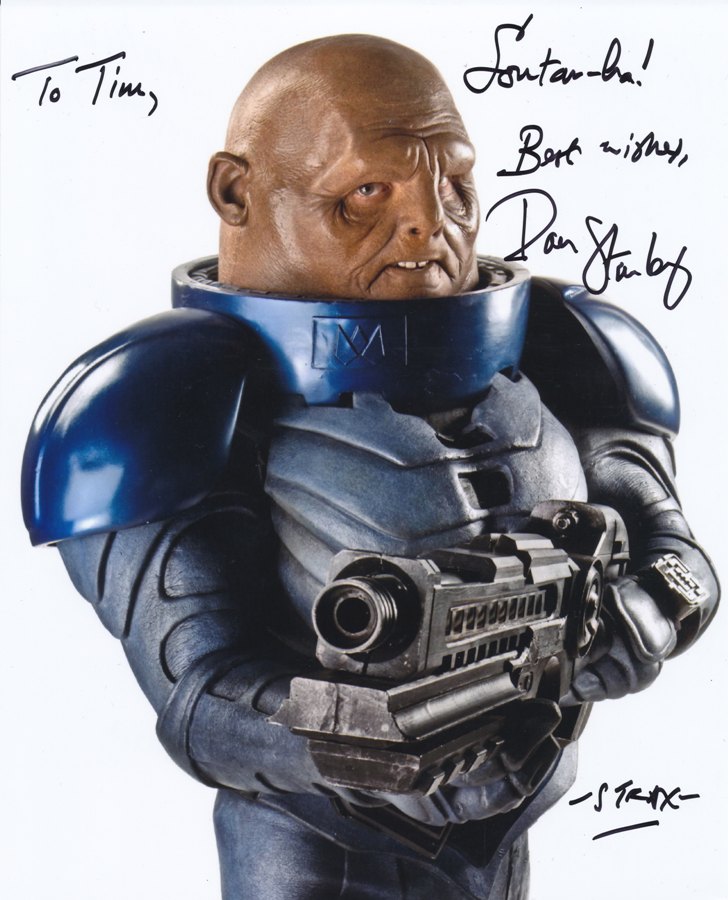To Tim Sonta-Ha! Best Wishes Dan Starkey -Strax- ← Previous Next → Tim Bradley’s photo of Strax signed by Dan Starkey