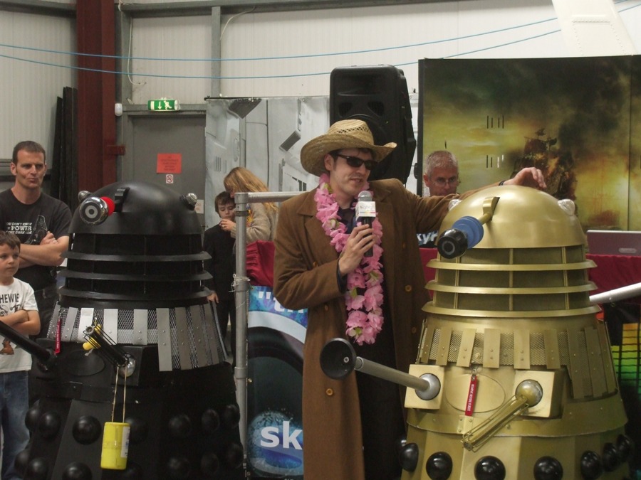 50. The Tenth Doctor with Daleks ← Previous Next → The Tenth Doctor and the Daleks at ‘Stars of Time’, Weston-super-Mare, July 2012