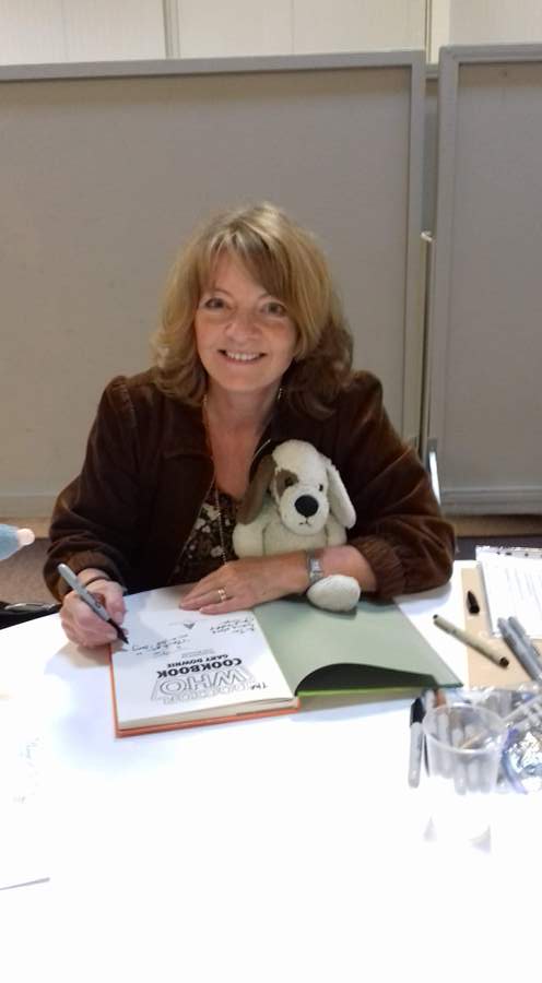 17. sarah and cuddles bedford who charity con ← Previous Next → Cuddles with Sarah Sutton signing ‘The Doctor Who Cookbook’ at ‘Bedford Who Charity Con 6’, October 2021
