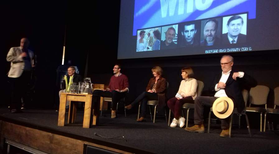 3. welcome bedford who charity con ← Previous Next → Simon Danes with Peter Roy, Paul Marc Davis, Sarah Sutton, Janet Fielding and Peter Davison at ‘Bedford Who Charity Con 6’, October 2021