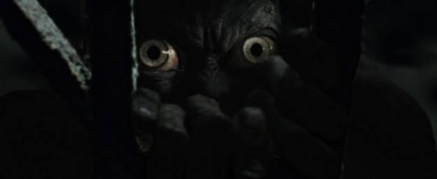 But Frodo pokes Gollum in the eye when he gets a chance. Gollum shrieks once he’s been poked in the eye, before he falls down the stairs.