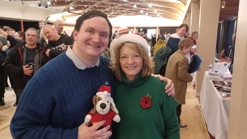 35 christmas ← Previous Tim Bradley with Santa Cuddles and Sarah Sutton at ‘Scarborough Comic Con 2023’, Scarborough Spa, Scarborough, November 2023