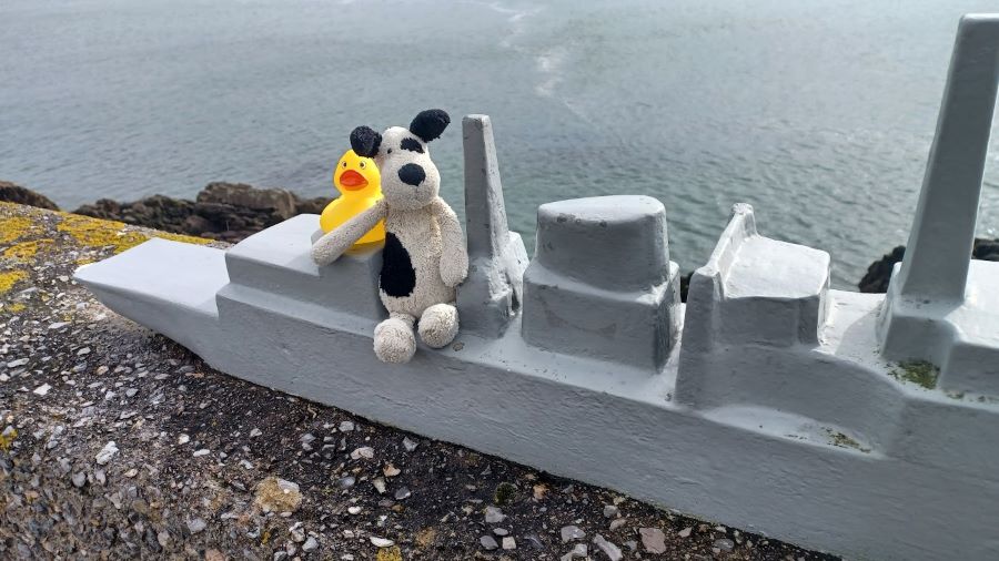 4. donald and buggles ← Previous Next → Donald the Duck and Buggles on the H.M.S. Cornwall, Plymouth, March 2024.
