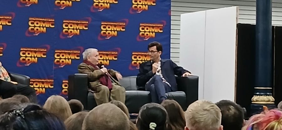 71. david tennant and sylvester mccoy ← Previous Next → Sylvester McCoy and David Tennant on stage at the ‘London Comic Con Winter 2025’, November 2025