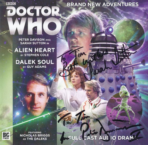 ‘Alien Heart’-‘Dalek Soul’ signed by Peter Davison and Sarah Sutton ← Previous Next → Tim Bradley’s CD cover of ‘Alien Heart’/’Dalek Soul’ signed by Peter Davison and Sarah Sutton.