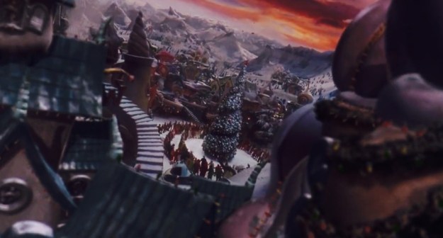 The Whoville set designs are pretty unusual and weird for their appearance, but they seem to make sense in a wonderfully weird Christmassy way. A lot of the time, the action set pieces of Whoville take place outside. This is especially when the crowds of Whoville gather for certain Christmas occasions.