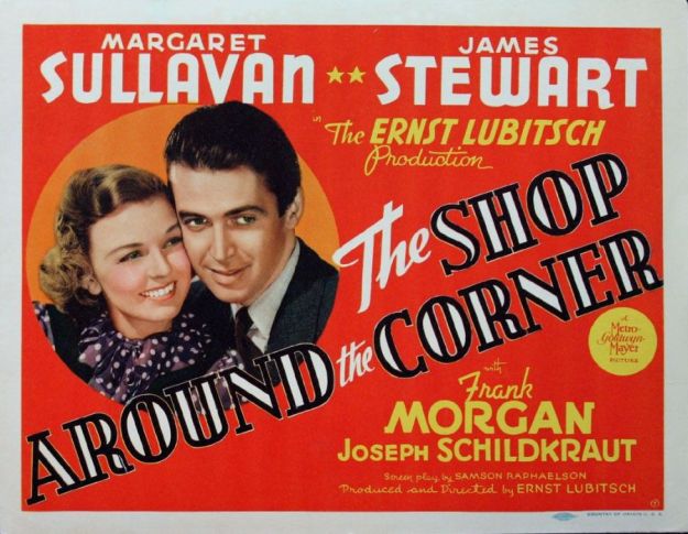 ‘The Shop Around The Corner’ is a 1940 film based on the 1937 Hungarian play ‘Parfumerie’ by Miklós László. It stars James Stewart and Margaret Sullavan as the main leads. This is one of my Dad’s favourite films. I think it’s okay, although my Dad’s tastes in movies don’t exactly match mine.