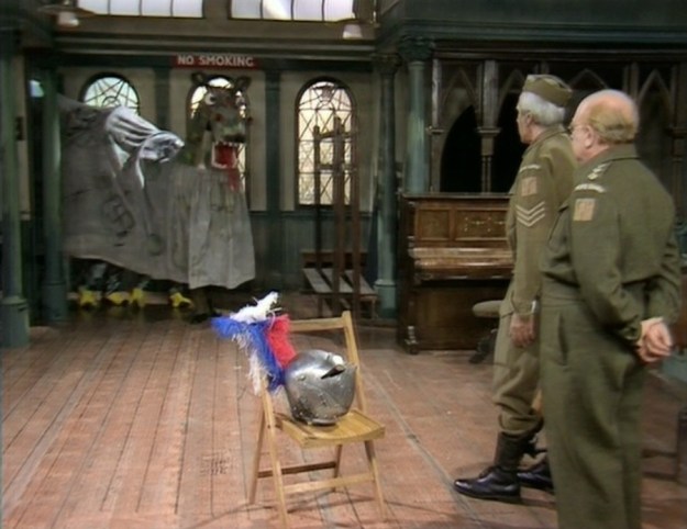I like this episode and it’s probably my favourite out of Series 9. Captain Mainwaring and his men take part in the ‘Wings for Victory’ week by doing a re-enactment of St. George and the Dragon. Chief Warden Hodges has the same idea and soon two St. Georges and two dragons fight each other.