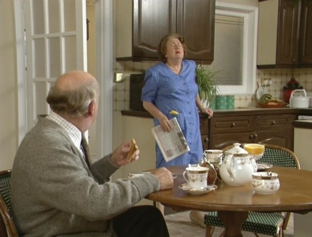 This was following the moment where Liz accidentally spilt her coffee onto the biscuits, making them soggy. The episode also features Robert Rawles as the milkman, who’s accompanied by John Waterhouse. I’m not sure if he’s the milkman’s son or his assistant, especially since he’s quite young.