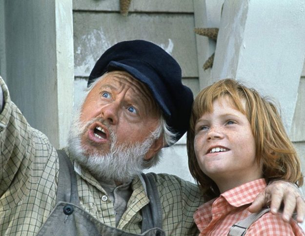 Mickey Rooney stars as Lampie, Passamaquoddy’s lighthouse keeper and Nora’s father. Wow! Mickey Rooney’s in this! He’s older since the days he did movies with Judy Garland! Lampie is the first one to meet Pete and see his dragon Elliot. He’s terrified once he sees a dragon, yet no-one else believes him.
