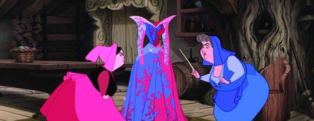 Even during the film’s closing scene, Flora and Merryweather fight it out over which colour Aurora’s ball gown should be when she’s dancing with Prince Philip – whether it should be pink or blue. Me personally, I would’ve gone with blue. Blue’s my favourite colour, you see. Why couldn’t it be blue? 😀