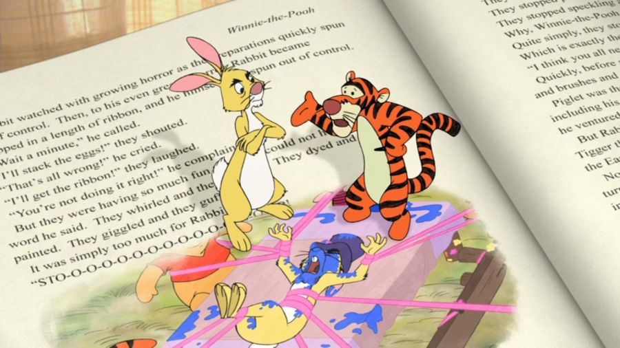 With that said, there’s an echo of the style of storytelling from ‘The Many Adventures of Winnie the Pooh’ where the narrator is reading through the pages of a book, as if this was an A. A. Milne story, which I appreciate and find quite entertaining when watching this. 🙂
