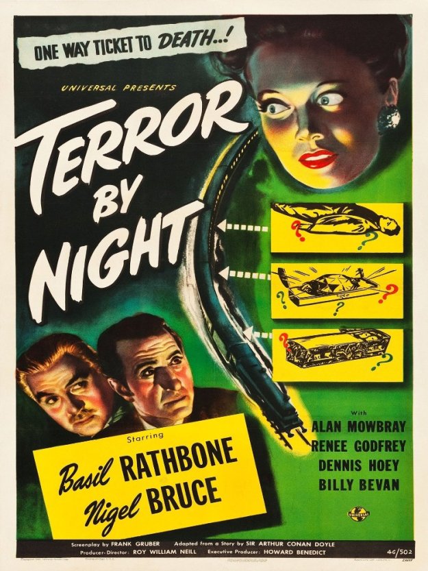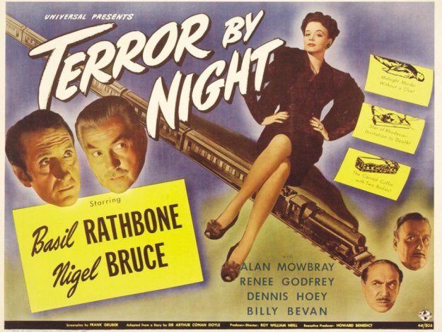 ‘Terror by Night’ is the thirteenth and penultimate film in the ‘Sherlock Holmes’ film series, starring Basil Rathbone as Sherlock and Nigel Bruce as Dr. Watson. It involves a diamond theft aboard a train.