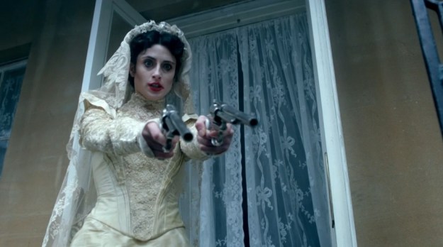 Then we move forward to where Sherlock and Watson are investigating a crime case involving a bride who shot herself in the head and rose from the grave to kill her husband, making her a ghost. 🙂