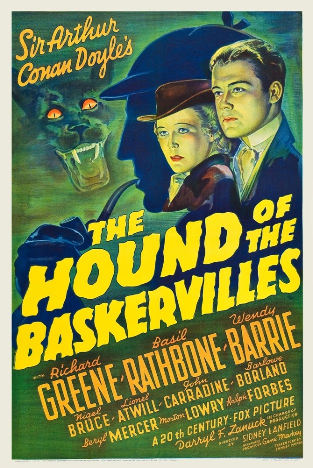 This happens when Richard Greene as Sir Henry Baskerville comes to inherit the Baskerville manor. Holmes and Watson do all they can solving the mystery once the ferocious dog comes out at night. 🙂