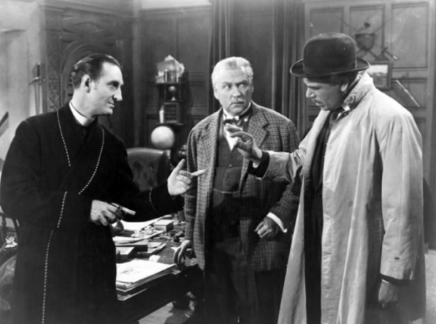 Dennis Hoey returns as Inspector Lestrade in the film. I like how Lestrade continues to be a thorn in Holmes and Watson’s investigations. He still works with them, but he can become sceptical at times.