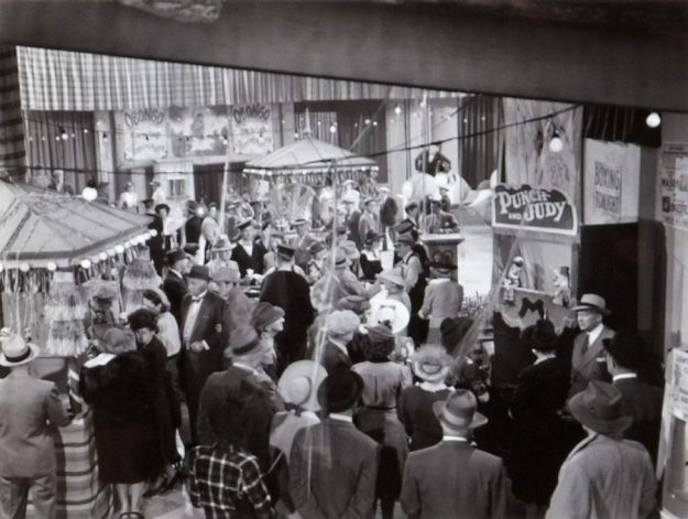 Incidentally, the moving targets in the shooting gallery are Hitler, Mussolini and Hirohito cartoons. This was to indicate that these films were made during World War II, like previous films did before. 🙂