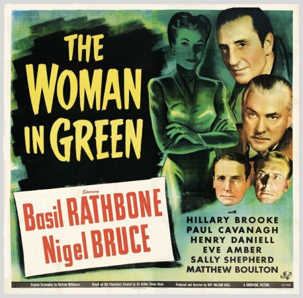 This ‘Sherlock Holmes’ film is called ‘The Woman in Green’, but it’s hard to tell whether she is in green since the film’s in black and white. I don’t think they even refer to her as ‘a woman in green’.