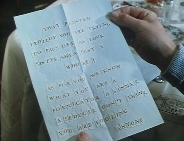 These happen to be poison pen letters sent by an anonymous writer as they’re sent to everyone in the village. It seems to be a vulgar joke at first before one of the letters causes someone to get killed.