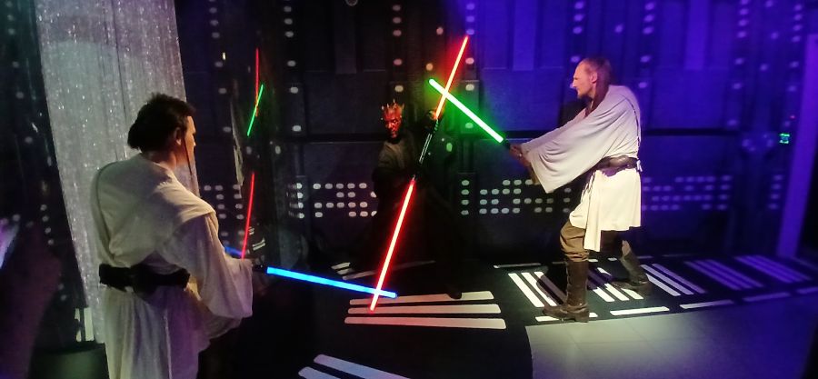 london weekend193 madame tussauds ← Previous Next → Obi-Wan Kenobi, Darth Maul and Qui-Gon Jinn from ‘Star Wars: Episode I – The Phantom Menace’ at Madame Tussauds, August 2025