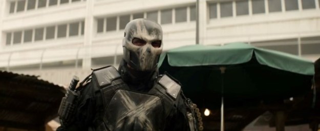Frank Grillo returns as Brock Rumlow, who was in ‘The Winter Soldier’ and was the commander of S.H.I.E.L.D.’s counter-terrorism S.T.R.I.K.E. team. This time in ‘Civil War’ however, he’s become a masked terrorist called Crossbone. He’s only in the early Nigeria mission scenes of the movie though.