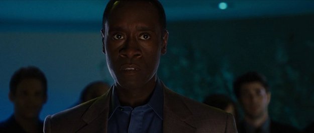 Lt. Colonel ‘Rhodey’ Rhodes returns in the film, now played by Don Cheadle. It’s a shame Terrence Howard didn’t reprise his role as ‘Rhodey’ Rhodes for this movie. He didn’t return due to the fact he would get a pay cut for the second film. Clearly ‘Rhodey’ had plastic surgery and the voice change. 😀