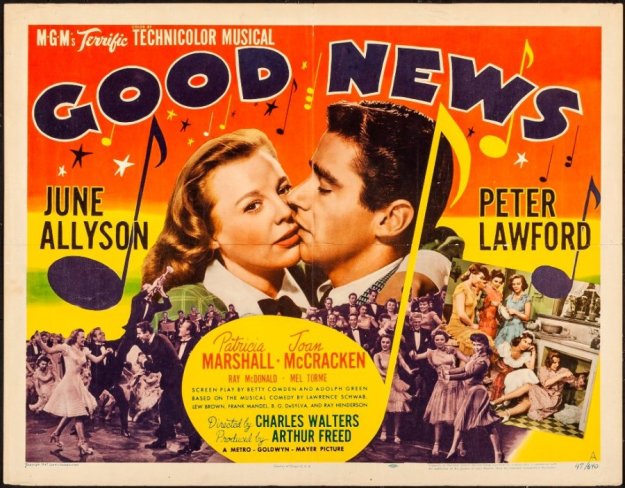 The 1947 ‘Good News’ was the second film adaptation of the 1927 stage play. The first one was a 1930 film that had sexual innuendo and suggestive humour. Ooh! That would’ve been naughty in those days. 😀 I suppose the 1947 film was made to cover up embarrassment found in the 1930 film.