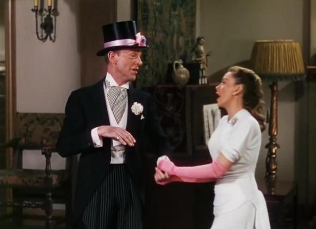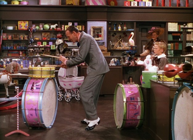 The film takes place in 1912 and Fred Astaire plays the Broadway star Don Hewes. It starts off with him buying Easter presents for his sweetheart and dancing partner, Ann Miller as Nadine Hale. This includes him getting a boy to part with an Easter Bunny by distracting him with a set of drums. Cruel! 😀