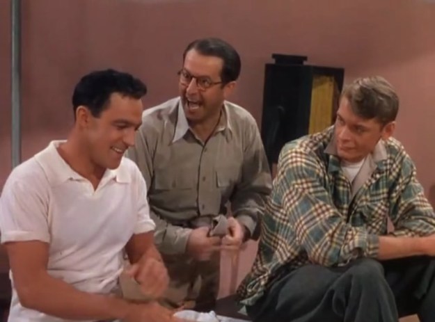 Phil Silvers stars as Herb Blake, one of the theatre troupe led by Joe Ross and clearly the comic relief. 😀 Phil Silvers is well-known for playing Sgt. Bilko in his own show ‘The Phil Silvers Show’ from 1955 to 1959. Astonishing to find Phil Silvers in this musical film before he became famous as Sgt. Bilko! 😀