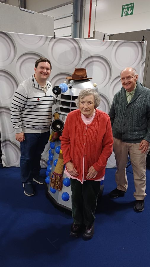 p5. tim bradley, a dalek, mum and dad ← Previous Next → Tim Bradley with a Dalek, Mum and Dad at ‘MegaCon Live Farnborough 2025’ at the Farnborough International Exhibition & Conference Centre, Farnborough, October 2025