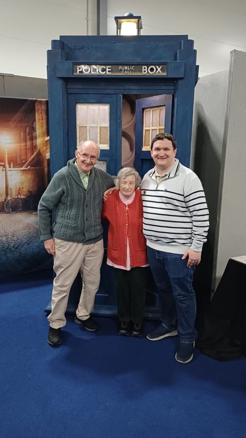 p6. dad, mum and tim bradley at the tardis ← Previous Next → Dad, Mum and Tim Bradley in front of the TARDIS at ‘MegaCon Live Farnborough 2025’ at the Farnborough International Exhibition & Conference Centre, Farnborough, October 2025