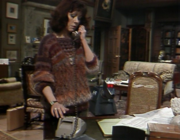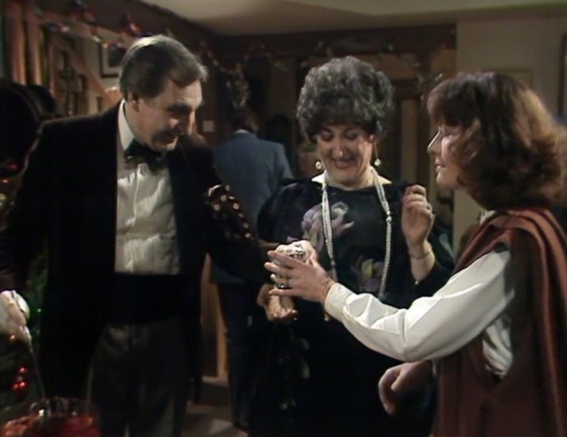 And of course there’s John Quarmby as Henry Tobias, who is the editor of Morton Harewood’s ‘Standard’ newspaper when Sarah Jane meets him at Juno Baker’s party. I was delightfully surprised to see John Quarmby in this, as he played Mr. Carnegie in the ‘Fawlty Towers’ episode ‘Basil the Rat’.