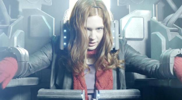At night-time, once everyone’s gone, Amelia comes out of hiding and discovers the Pandorica, one of the museum’s exhibits. She touches the Pandorica with her hand and it opens up to reveal…herself!