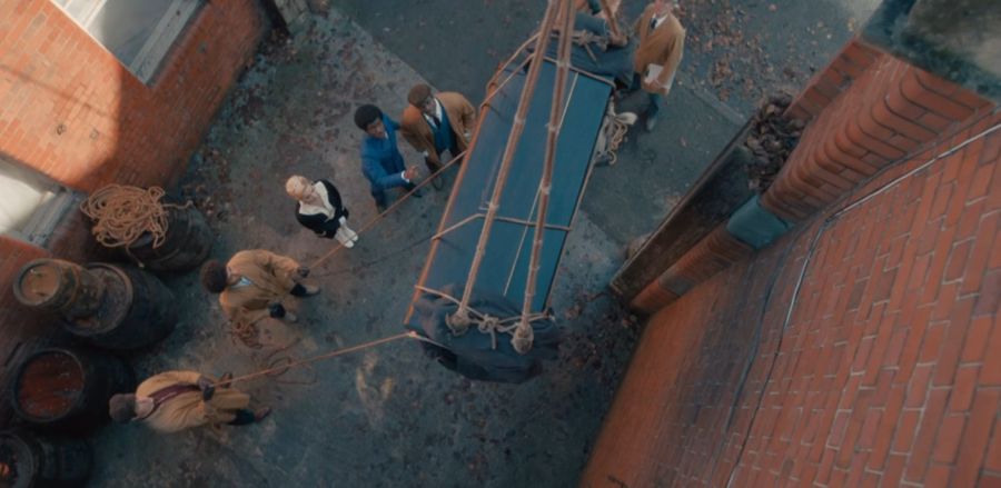 The Doctor later has a piano lifted to the studio’s roof and Ruby notes about the mysterious dark smog overtaking London’s skies. The Doctor also talks about his granddaughter Susan, who is with him as the First Doctor in 76 Totter’s Lane, Shoreditch.