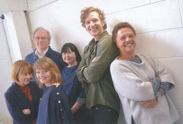 Janet Fielding, Peter Davison, Sarah Sutton, Liz Sutherland-Lim, George Watkins and Angela Bruce in ‘Warzone’/’Conversion’.