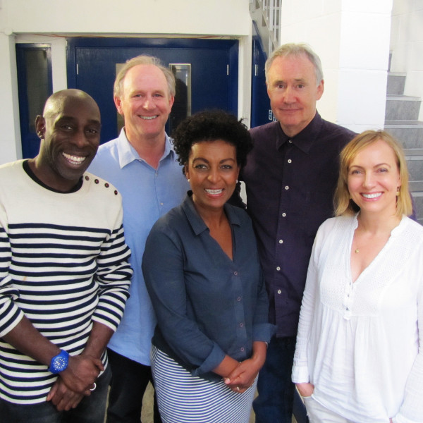 The cast of ‘Empire of the Racnoss’. From left to right: Andrew French, Peter Davison, Adoja Andoh, Nigel Planer and Lisa Kay.