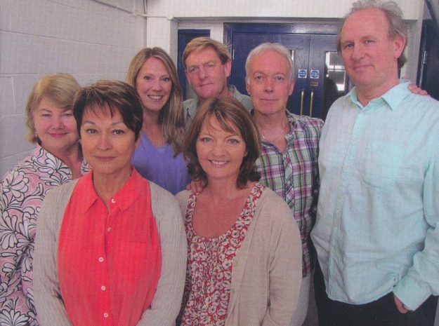 The cast of ‘Equilibrium’. From left to right: Annette Badland, Janet Fielding, Joanna Kirland, Mark Strickson, Sarah Sutton, Nickolas Grace and Peter Davison.