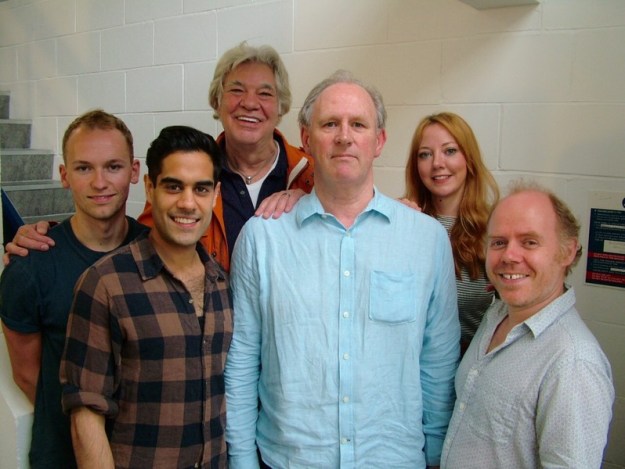 The cast of ‘Fallen Angels’. From left to right: Joe Jameson, Sacha Dhawan, Matthew Kelly, Peter Davison, Diane Morgan and Dan Starkey.