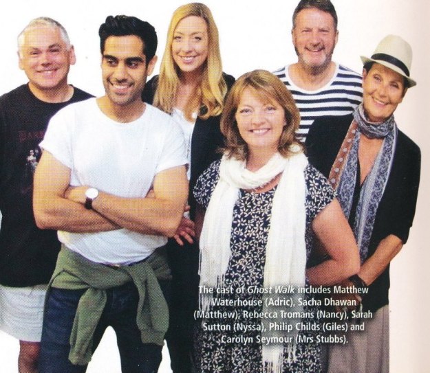 The cast of ‘Ghost Walk’. From left to right: Matthew Waterhouse, Sacha Dhawan, Rebecca Tromans, Sarah Sutton, Philip Childs and Carolyn Seymour.