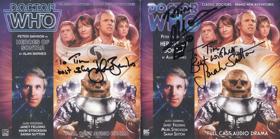 heroes of sontar signed by sarah sutton mark strickson and john banks ← Previous Next → Tim Bradley’s CD cover of ‘Heroes of Sontar’ signed by Sarah Sutton, Mark Strickson and John Banks Like Loading...