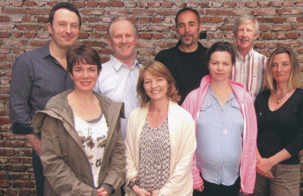 The cast of ‘Masquerade’. From left to right: Andrew Dickens, Victoria Hamilton, Peter Davison, Sarah Sutton, David Chittenden, Rebecca Night, Sean Brosnan and Francesca Hunt.