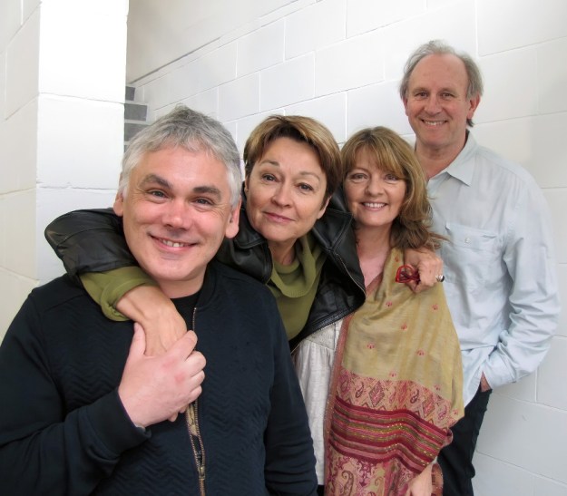 Matthew Waterhouse, Janet Fielding, Sarah Sutton and Peter Davison in ‘Secrets of Telos’.