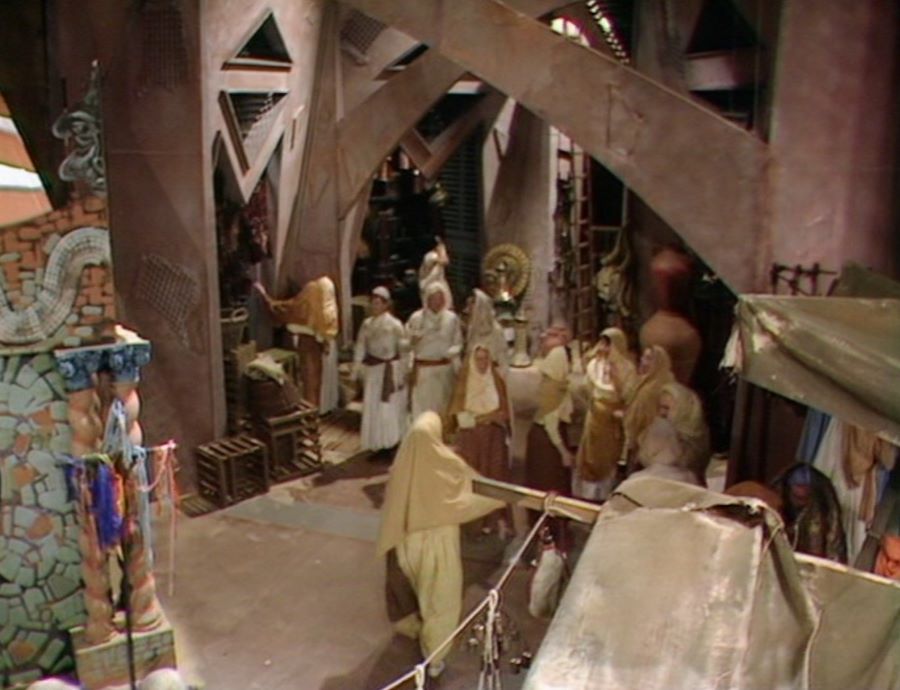 And look, I know, I know. Manussa is an alien society and maybe what Martin Clunes’ character and everyone else is wearing is acceptable, including the ceremony outfit that Lon wears in ‘Part Four’. Aspects of Manussa were based on Morocco designs, I believe.