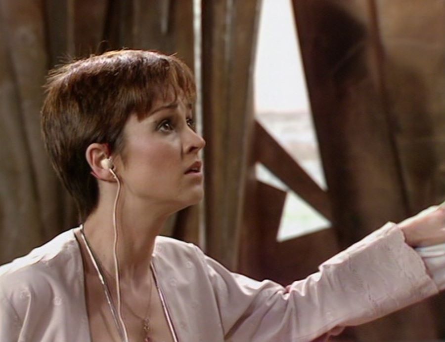 Something I forgot to mention in my ‘Arc of Infinity’ review is that Tegan has a new haircut compared to the hairstyle she had in Season 19 and she’s wearing a new outfit compared to the purple uniform she wore. Janet was very happy with her new haircut. 🙂