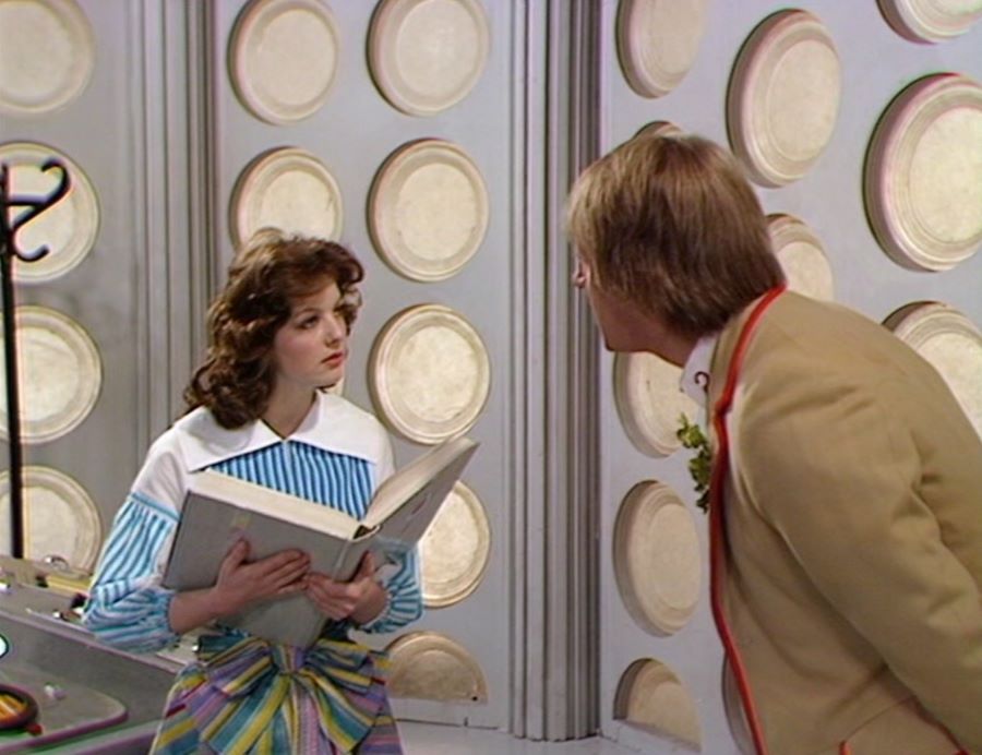 Initially, Tegan is frightened, especially when having had her nightmare in the TARDIS. As the story progresses, she loses control and becomes playful, especially when meeting up with Nyssa, who sees she isn’t wearing the earplugs and the anti-dreaming device. 😐