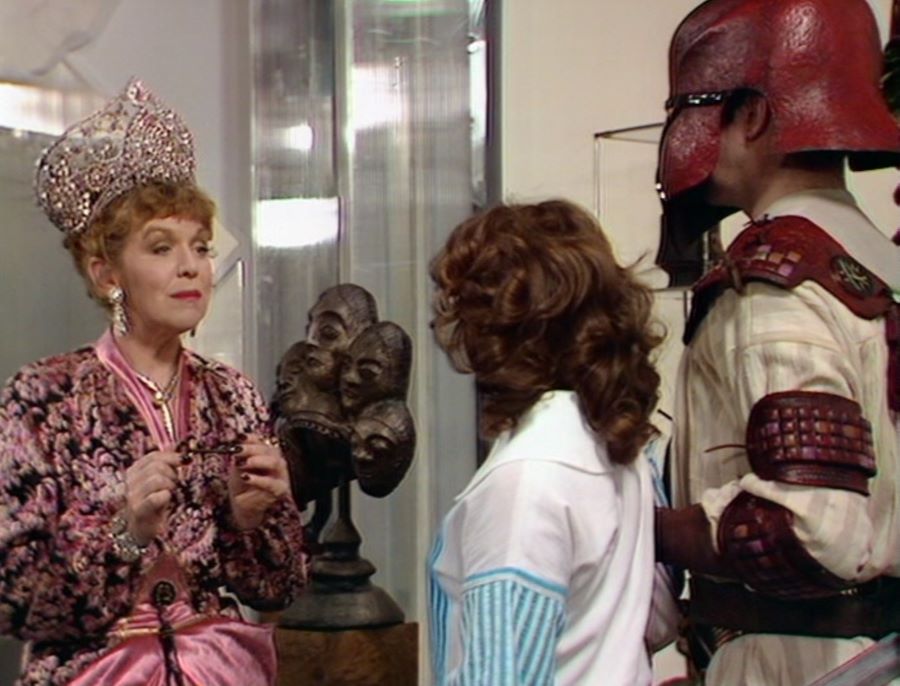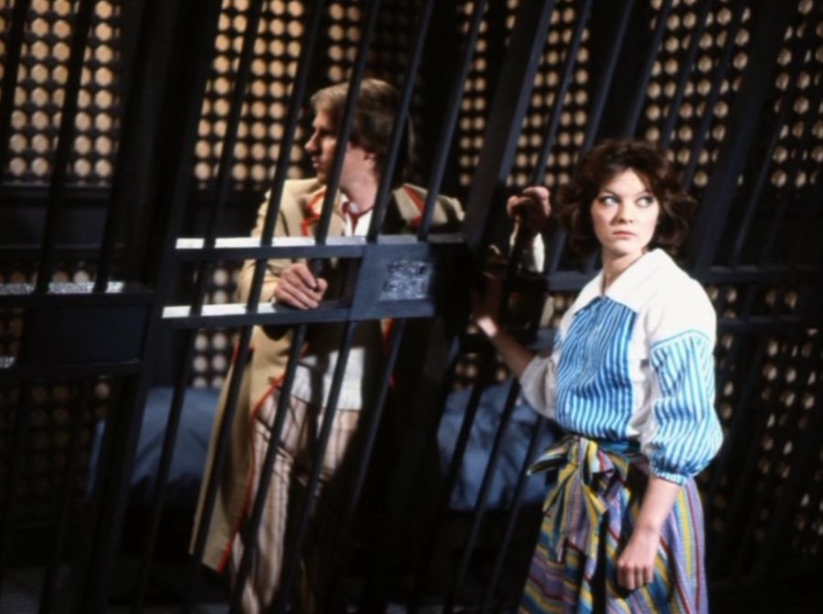 She’s resourceful, especially when trying to solve the puzzle of what’s going on in the snake mouth-like cave where the special ceremony for the ‘Part Four’ climax is about to take place. She also does her best in finding the key to free the Doctor from his prison cell. 🙂